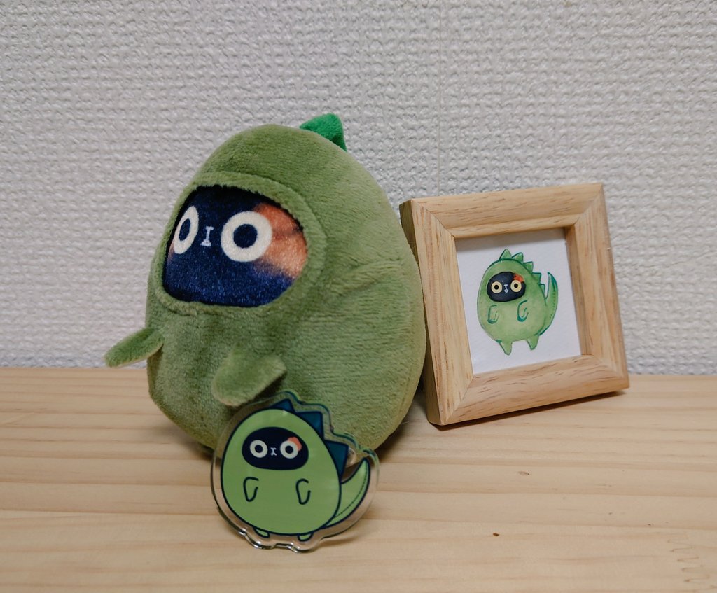 #ゴールデンウィークSNS展覧会2023 サビ猫を中心に、ミニ原画やグッズをつくっています! 好きなものを詰め込んだ恐竜サビちゃんぬいぐるみはお気に入り✨ 今後カラバリがふえて仲間が増えるかも…?