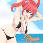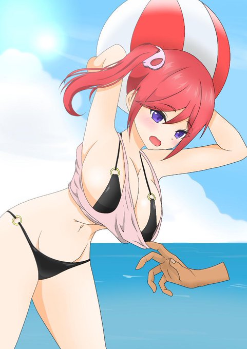 夏の海でボール遊びをしていて ボールを取ろうとしたら間違えて ルアさんの服を、、、 #エルイラスト