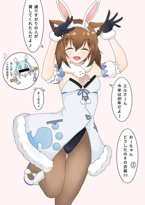 前におーちゃんが衣装交換してくれた方 (怒られないかな、、、(;゚д゚)ドキドキ) 並べてみると結構いい♪(*・艸・) #エルイラスト #ぺこらーと #兎田ぺこら