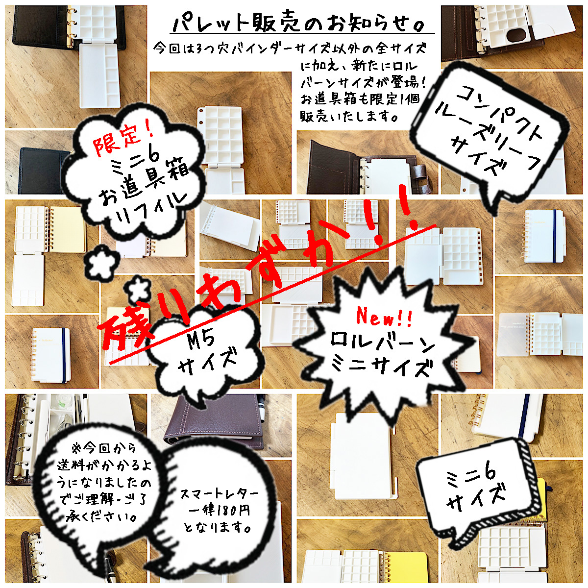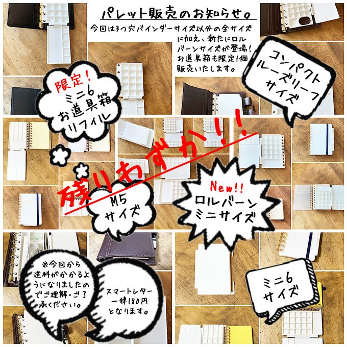 1 40 パレット販売のお知らせです。来週、新しく制作したミニ6サイズのパレットリフィルを販売予定です。ミニ6以外にも少し販売予定です。なお、クマさんパレットのプレゼントは終了いたしました。どうぞよろしくお願いします。#3Dプリント #パレット #お絵描き #イラスト #スケッチ #手帳 22/08/21 18:23