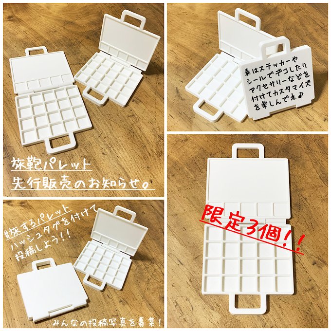 パレット販売のお知らせ。来月販売予定の旅鞄パレットを今夜先行販売します。限定3個です。どうぞよろしくお願いします。#3Dプリント #パレット #水彩 #イラスト #お絵描き #スケッチ #トランク
