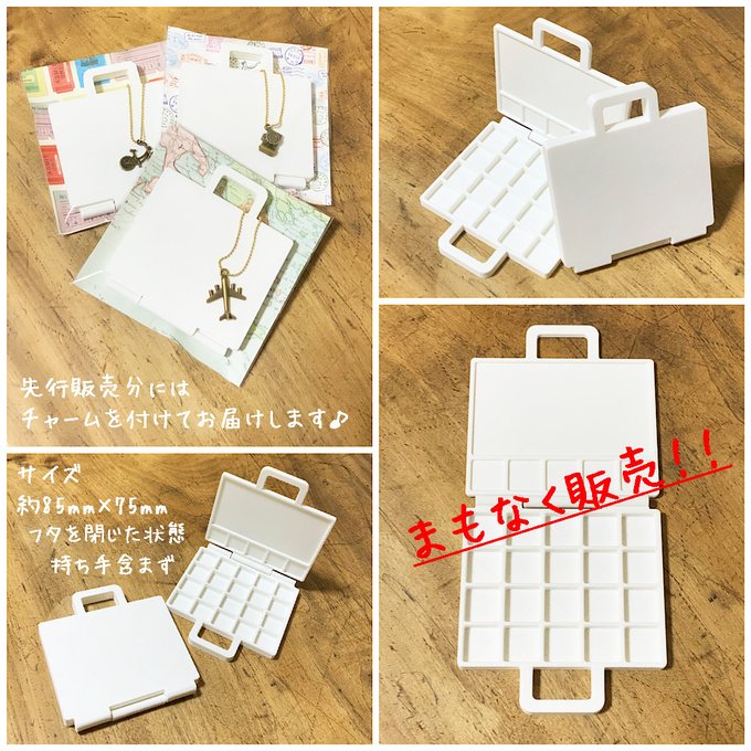 2 25 新しいパレットの先行販売のお知らせ。来月からパレットシリーズに加える予定の「旅鞄パレット」を先行販売しようと思います。お散歩で出かけたところや、旅先から「#旅するパレット」と付けて投稿していただけたら嬉しいです。#3Dプリント #パレット #水彩 #イラスト #お絵描き #スケッチ #トランク 22/09/22 18:17