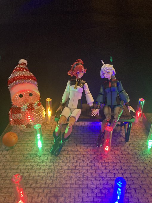 今年のクリスマス飾りが完成。 テーマは夫婦のクリスマスデート です(笑)。 水星の魔女は家族皆んなで観ているのでキャラに馴染みもあり、結構ウケも良かったかな。 電飾等も全部100均で用意したので、ベースは600円ほど。セリア様さまですね😄。 #水星の魔女 #ガンプラの画像貼るとRTされると聞いて