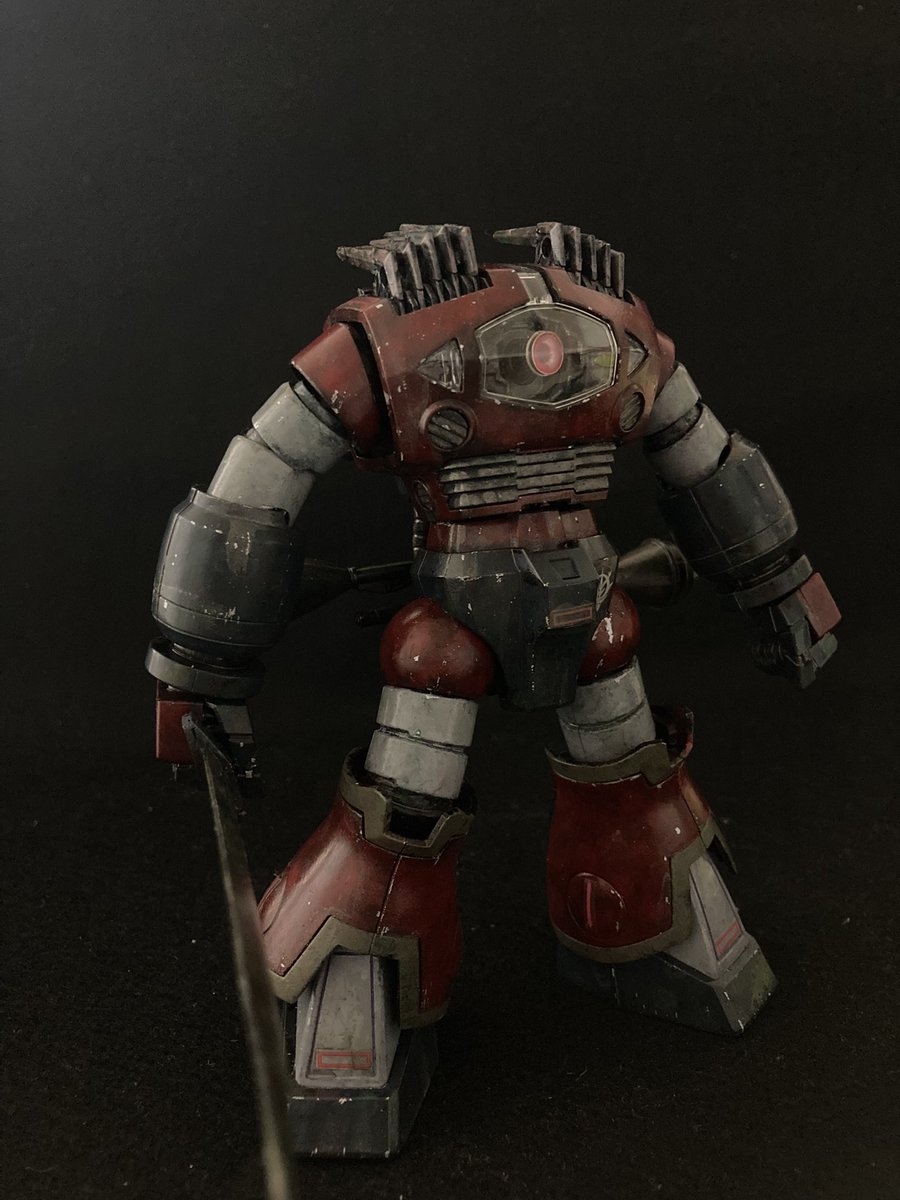 HGバウンドドッグが完成しました。 ほぼ素組みで水性塗料での筆塗りした後にエナメル塗料でウェザリングをしています。 ちょい大きめのキットなんで、つい派手めに銀はげ入れ過ぎちゃたかな😅。 #ガンプラ #ガンプラの画像貼るとRTされると聞いて #バウンドドッグ