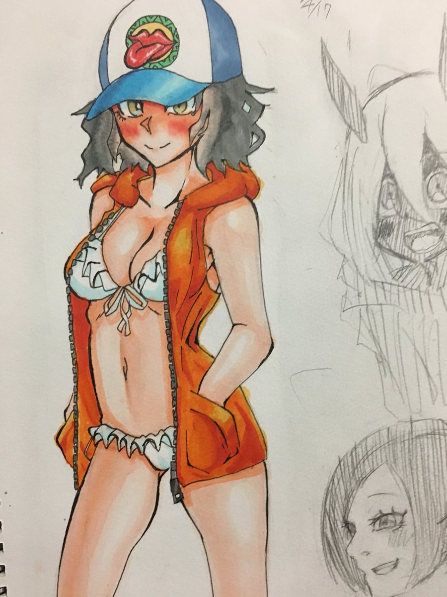 31 67 初めて本格的にコピック描いてみた 顔最初に塗ったから失敗したけど…… #オリジナル #水着 18/05/01 05:56