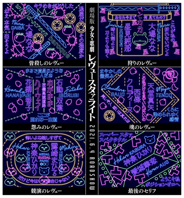 スタァライト禍からポストスタァライトに突入、狂乱から共生へ。映画鑑賞後に作った劇場版全レヴュービジュアル、抑えきれない情動が迸ってた。