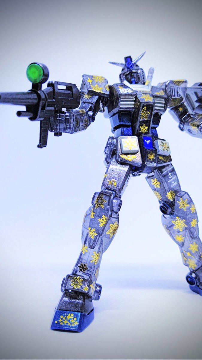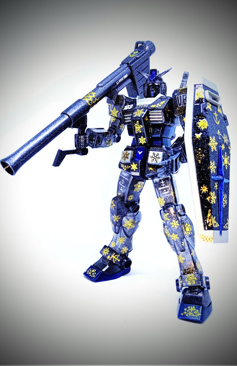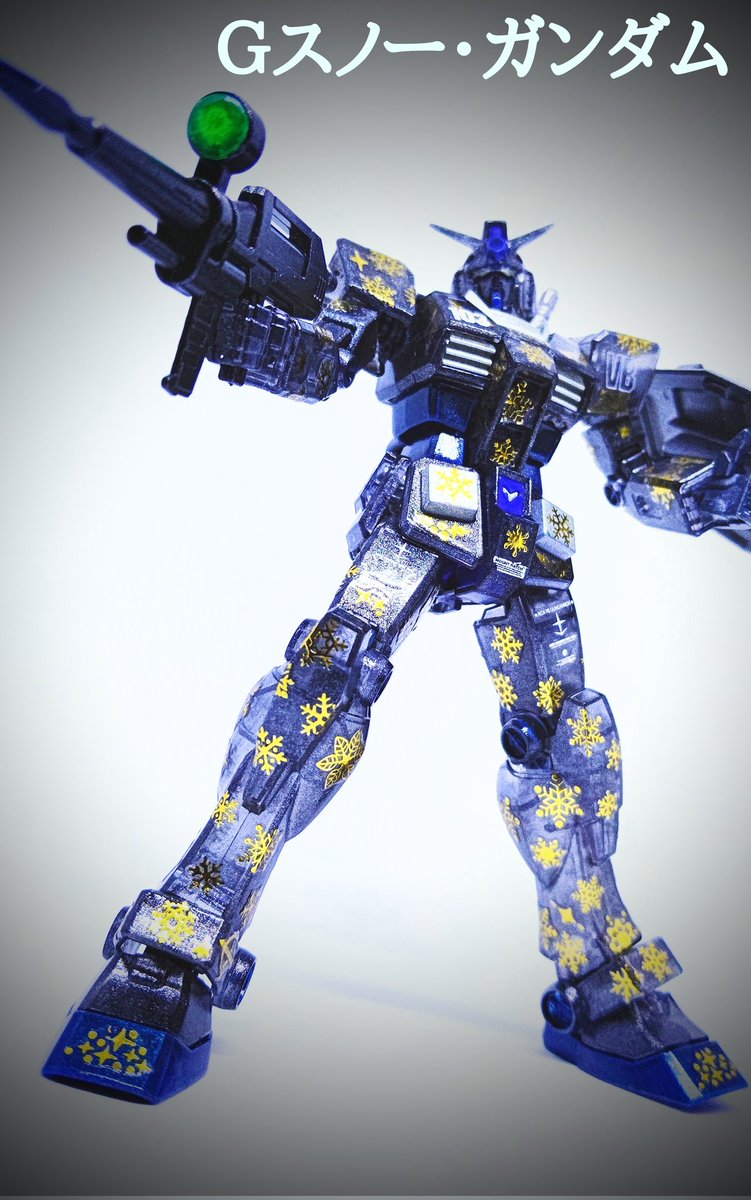 撮影ブースの影響で青っぽく写っていますが、冬バージョン完成。 名付けて【Gスノー・ガンダム】🎵 メタリックブラウンを基調として、シルバーとラメフレークで仕上げました。 #ガンプラ好きと繋がりたい #ガンプラの画像貼るとRTされると聞いて #ガンプラはどんな自由な発想で作ってもいいんだ