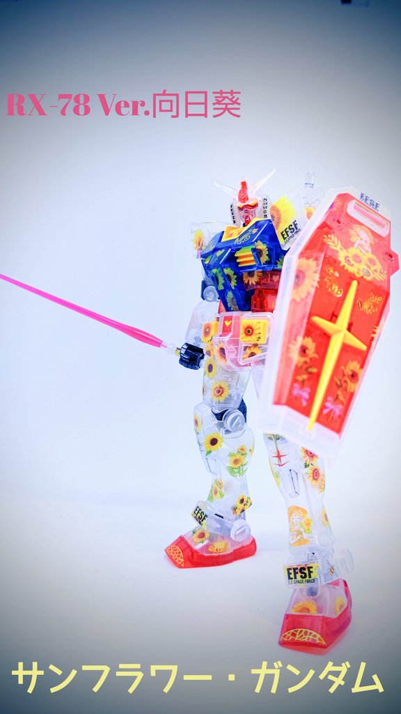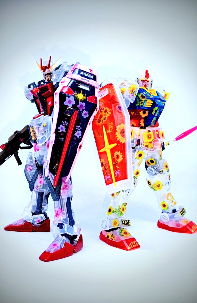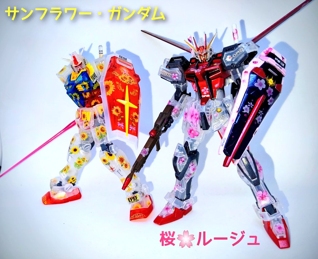 #エントリーグレード のクリアバージョンから作成。 テーマは季節の花🌸🌻 ストライクは昨年作ったものですが、折角なのでコラボしておきました。 #ガンプラ #ガンプラはどんな自由な発想で作ってもいいんだ #ガンプラの画像貼るとRTされると聞いて #週末モデラー