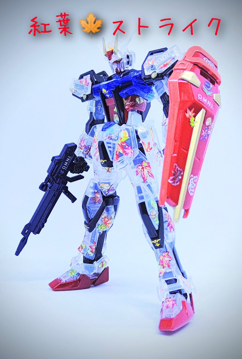 今週末2体目、秋バージョンになる【紅葉🍁ストライク】完成です🎉 クリアパーツのポディはそのままにして、ステッカーは控え目!?にしました。 此れでEGによる春夏秋冬・四季が揃いました🎵 #エントリーグレード #ガンプラ #ガンプラ好きと繋がりたい #ガンプラの画像貼るとRTされると聞いて