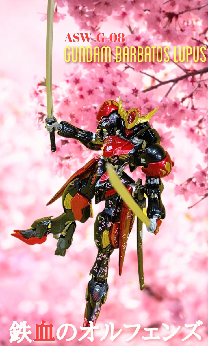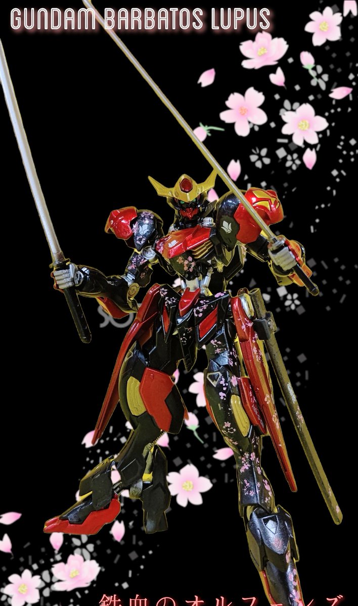 HG #バルバトスルプス 完成!! 黒をベースに鉄血の赤で表現してみました。 以前フォロワーさんから、桜柄が血しぶきに見えたとのコメントがあったので、今回は敢えて返り血の様に配置し、武器も刀にしてみました #ガンプラは自由だ #ガンプラ好きと繋がりたい #ガンプラの画像貼るとRTされると聞いて