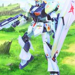 EG νガンダム 水彩画風に塗装したので、フリー画像から草原風景と組み合わせてみました。・・・良い感じです🎵 #ガンプラはどんな自由な発想で作ってもいいんだ #ガンプラの画像貼るとRTされると聞いて #ガンプラ好きと繋がりたい