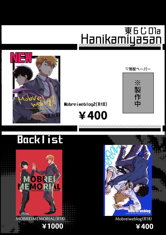 6/25JUNE BRIDE FES 2023内MOB0%発行の新刊サンプルとお品書きをピクシブにあげてきました! まとめ本のサンプル→pixiv.net/artworks/10924… おしながきとポスター→pixiv.net/artworks/10924… よろしくお願いいたします🙇✨