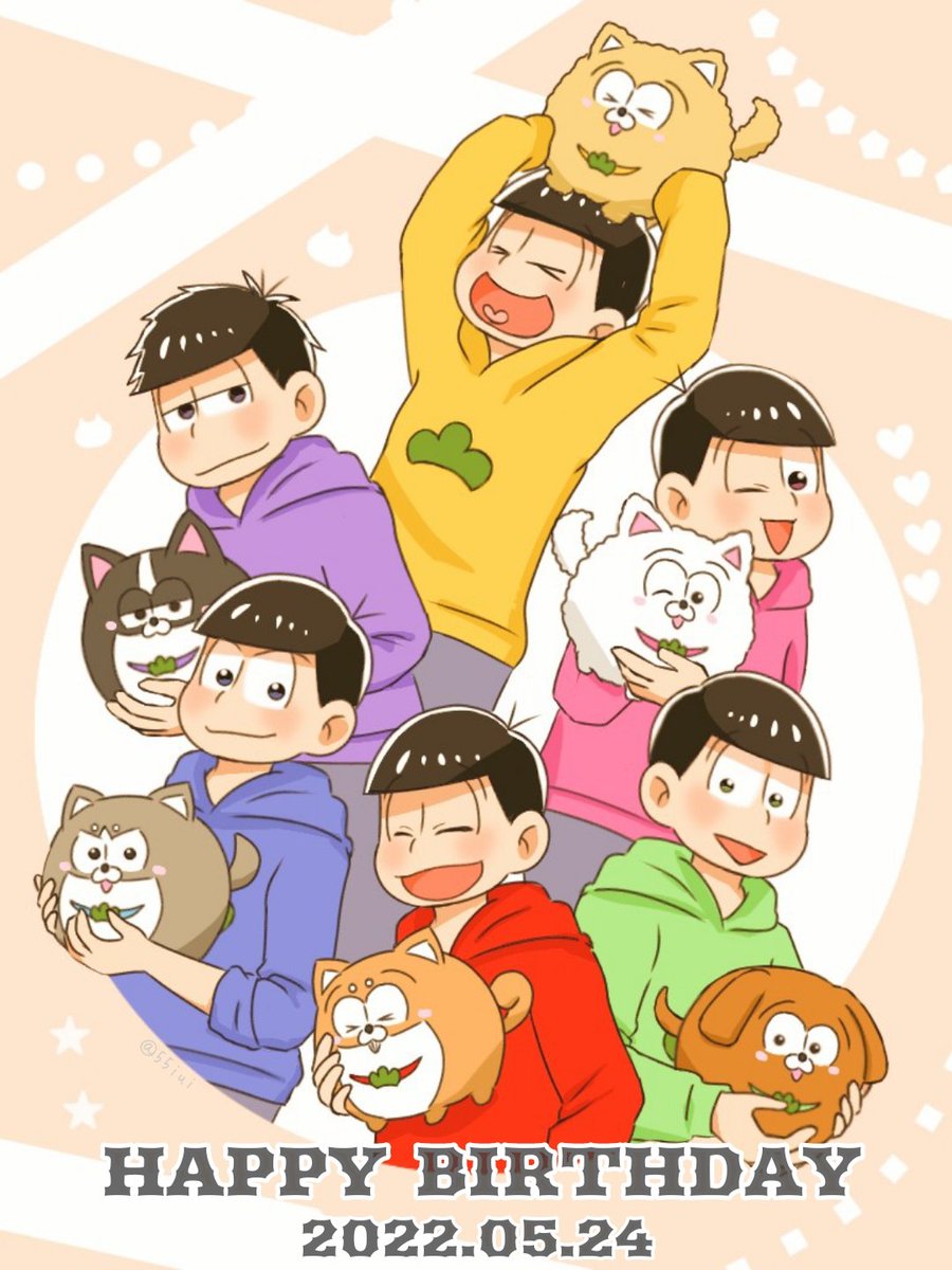 お誕生日おめでとう!生まれてきてくれてありがとう! 今年は🐶も一緒にお祝い。 #松野家6つ子生誕祭2022 #おそ松さん生誕祭 #5月24日はおそ松さん6つ子の誕生日