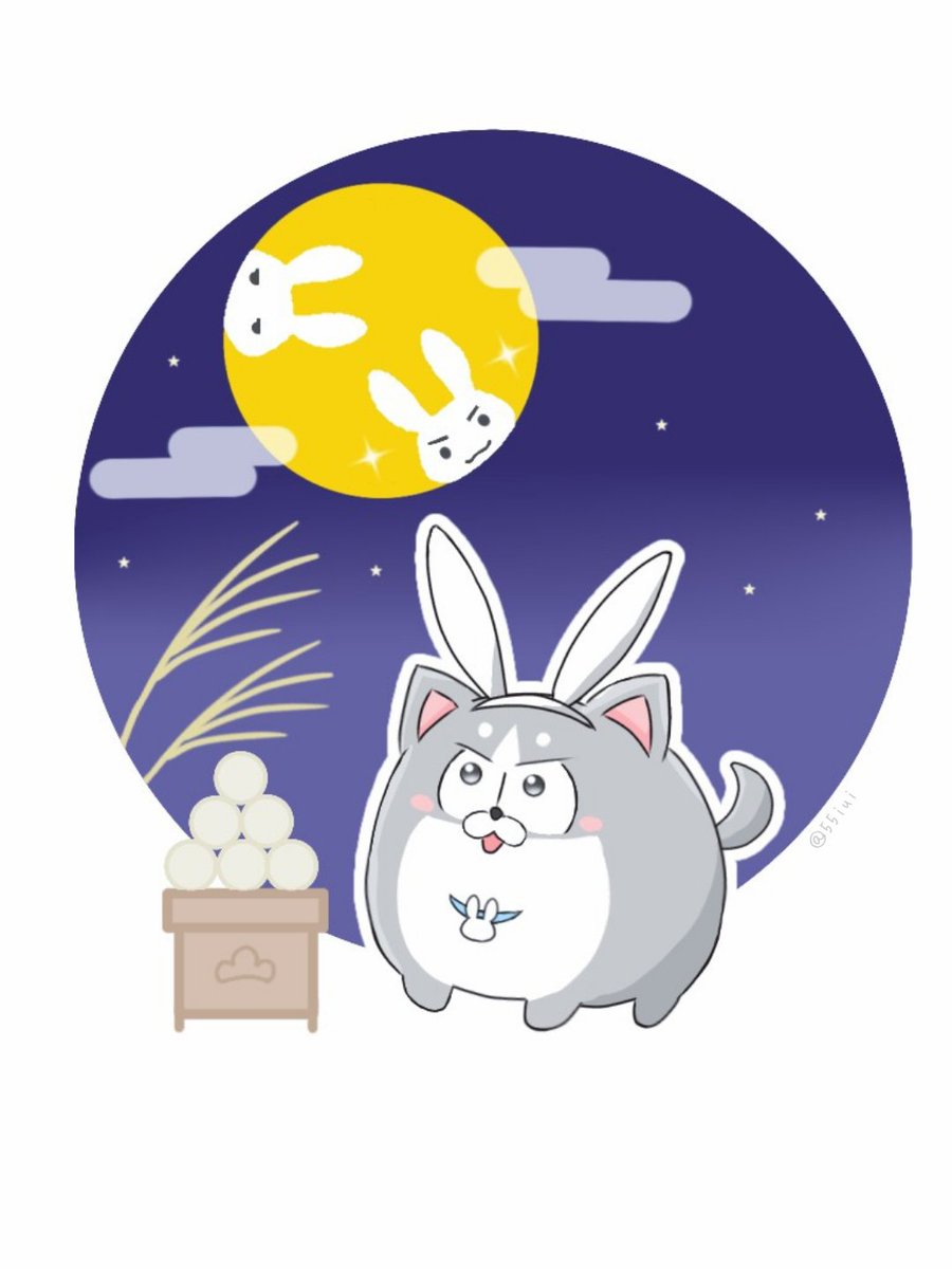 🎑🐰🐶 お月見のハスカラちゃん 再掲
