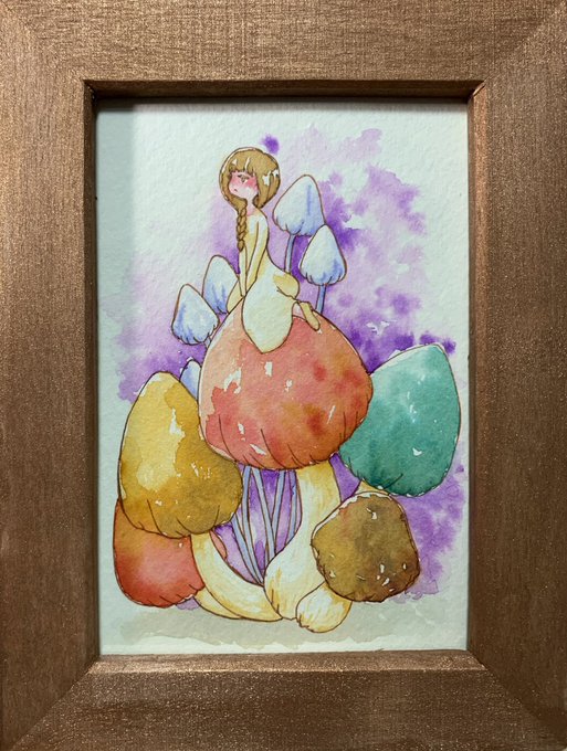 きのことみつあみ #イラスト #illustration #Original #創作 #オリジナル #女の子イラスト #きのこ #アナログ絵 #インク #水彩画 #水彩イラスト #ink