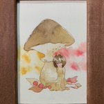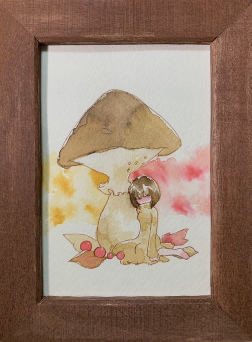 ハナイグチと秋 #イラスト #illustration #Original #創作 #オリジナル #女の子イラスト #きのこ #アナログ絵 #インク #水彩画 #水彩イラスト #ink