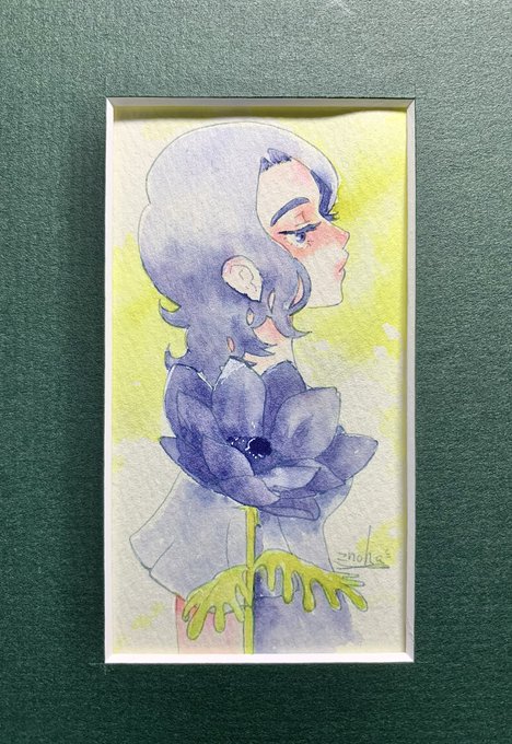 1 9 アネモネと横顔 #イラスト #illustration #Original #創作 #オリジナル #着物 #アナログ絵 #インク #水彩画 #水彩イラスト #ink #原画 ハガキサイズ 22/11/23 08:14