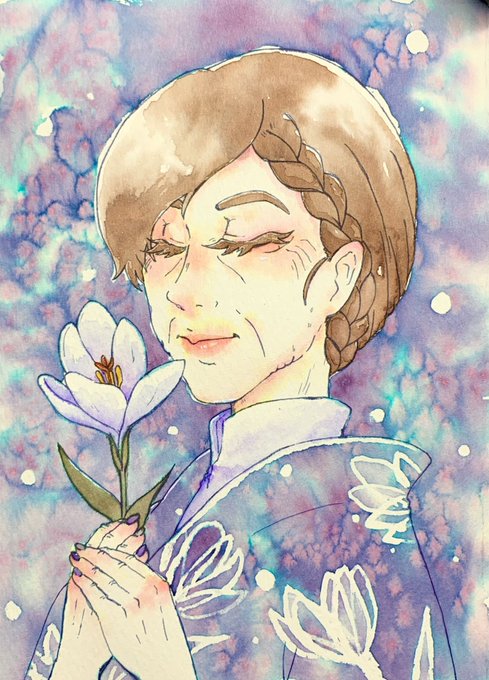 何度でも咲く-クロッカス- #イラスト #illustration #Original #創作 #オリジナル #着物 #アナログ絵 #インク #水彩画 #水彩イラスト #ink #原画 L2サイズ