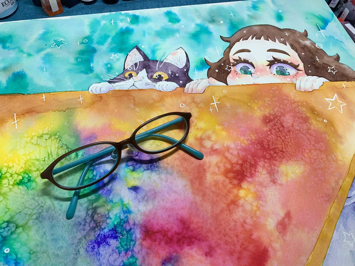 気になる #イラスト #illustration #Original #創作 #オリジナル #猫イラスト #猫 #アナログ絵 #インク #水彩画