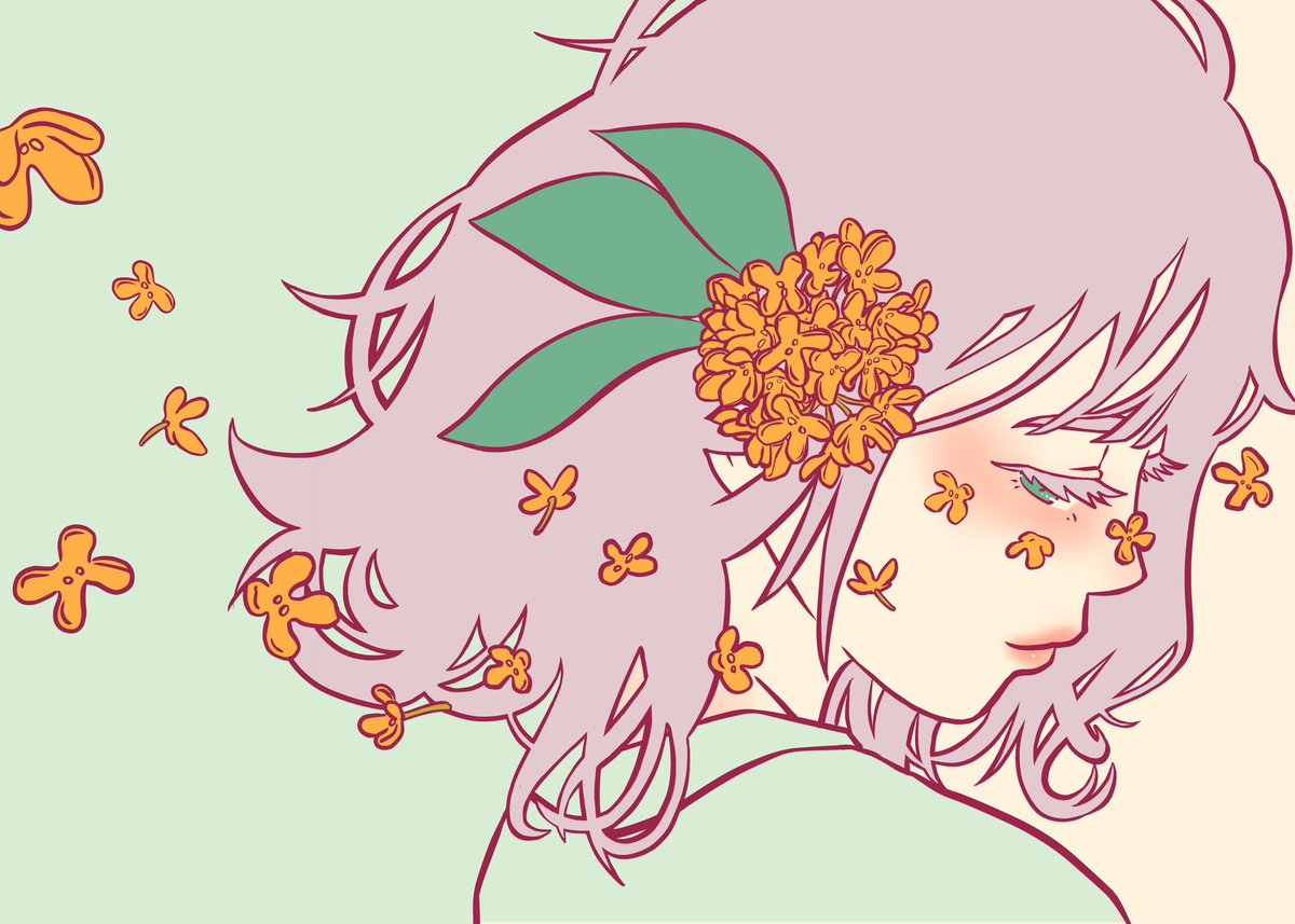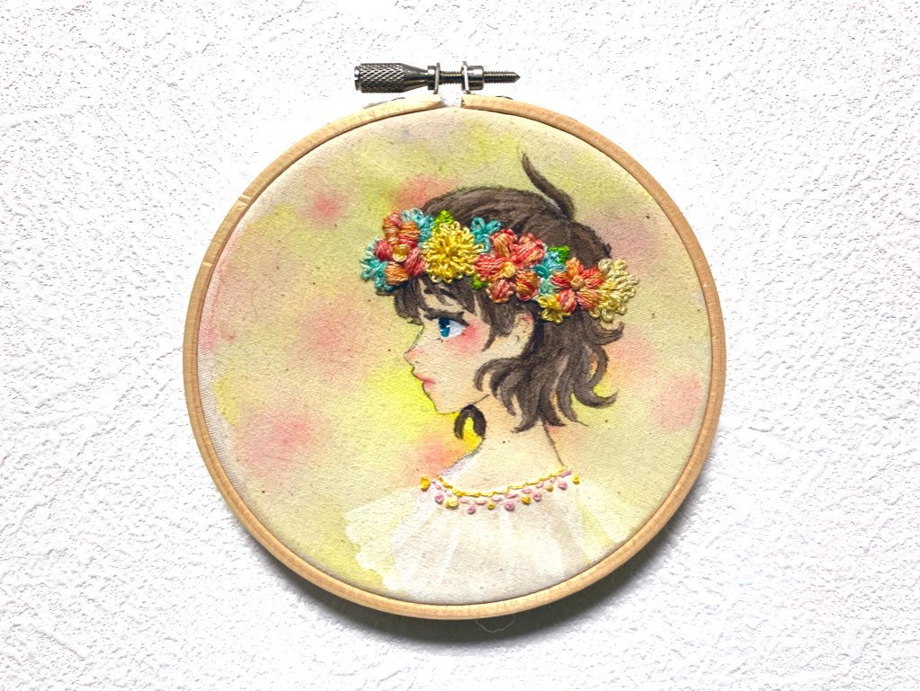 花を纏う娘 #イラスト #illustration #Original #創作 #オリジナル #着物 #アナログ絵 #インク #水彩画 #水彩イラスト #ink #原画