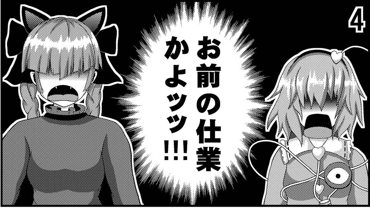 10:『ナズーリンに怒られてポカンとしているお空』 体調が回復してきたので一枚。「ナズ空」というレアな組み合わせ。何故こんな状況になっているのかコメント求む!所要時間は3時間02分。 #東方Project #ナズーリン #霊烏路空 #7月20日はナズーリンの日 #自由突破 #東方イラストで一言