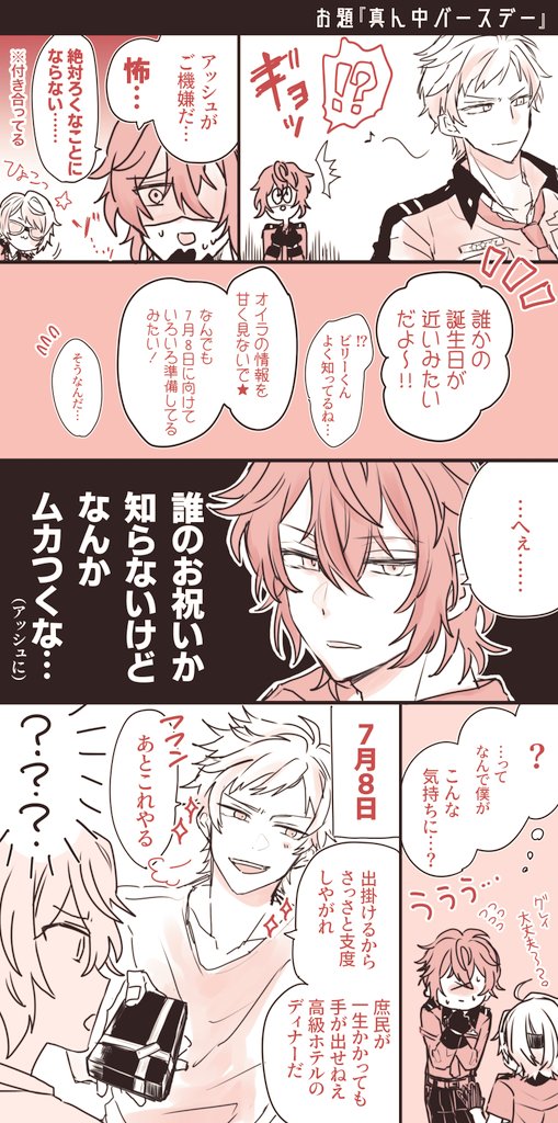 お題【真ん中バースデー(7/8)】 からお借りしました! ちなみに当たり前のように一室とってある #グレアシュ版ワンドロワンライ