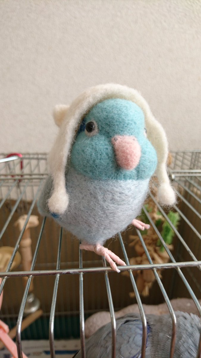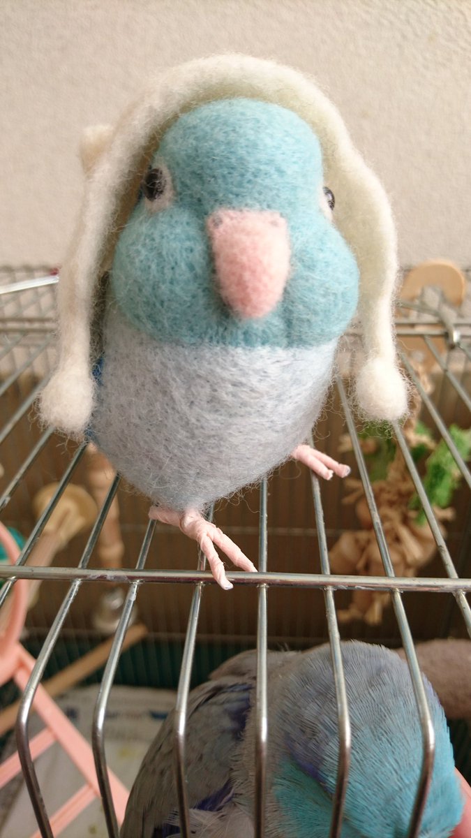1 25 ドラクエにハマる前は羊毛フェルト作りにハマっていたのですが、その時に作った猫耳の耳当てをしてるマメスケです✨ #マメルリハ #羊毛フェルト #インコ 21/08/04 09:38