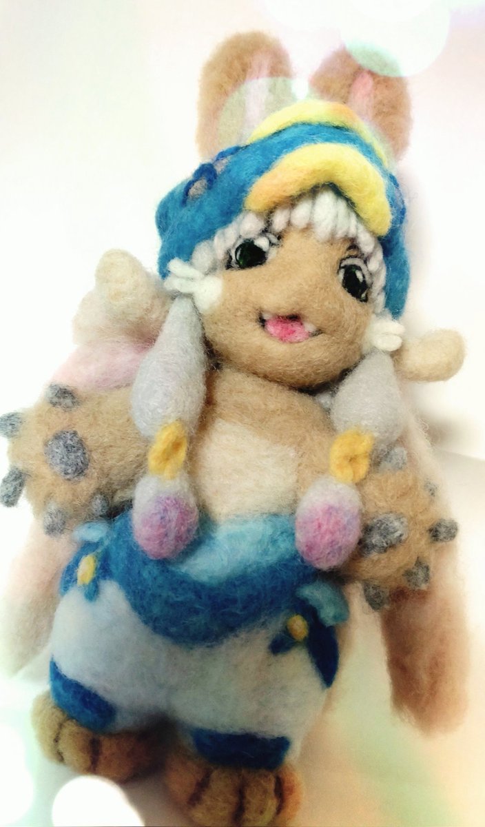 羊毛フェルトでメイドインアビスのナナチ作ってみました✨ 急遽新衣装に作り直しました💙 んなぁ~ #メイドインアビス #ナナチ #羊毛フェルト