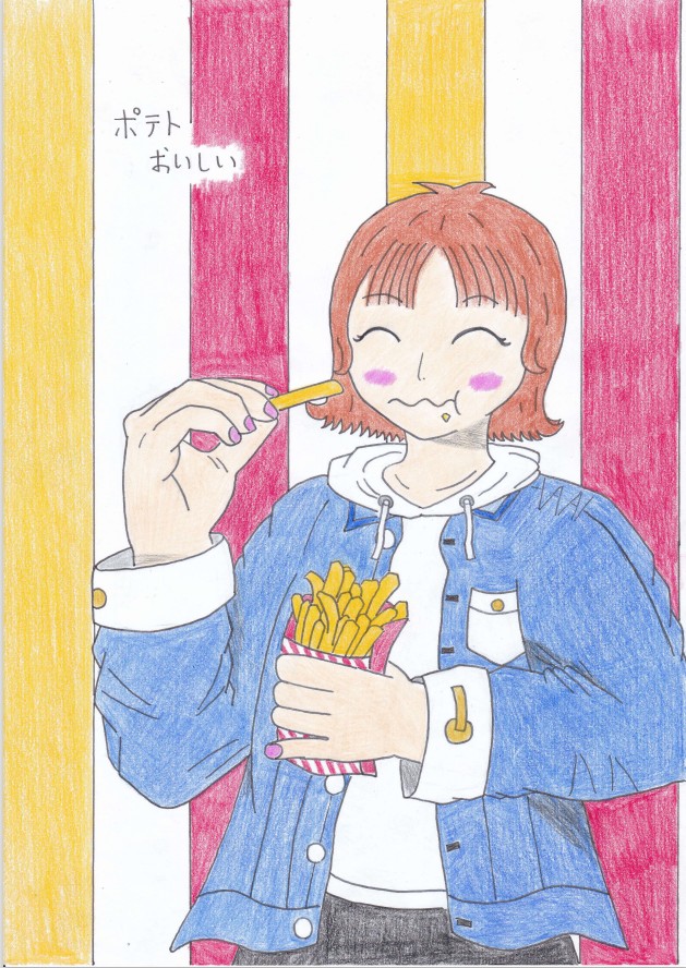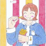 ひまわりさん🌻 「ポテトおいしい」 #イラスト #イラスト練習中 #色鉛筆 #色鉛筆イラスト #アナログイラスト