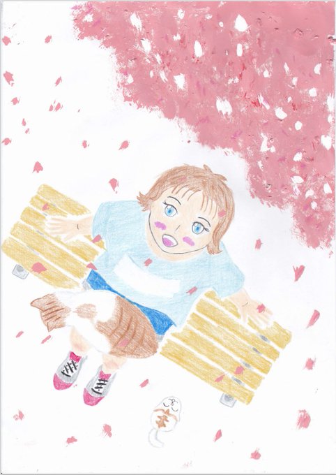 季節外れの桜のイラスト🌸 桜の部分は絵具を使いました。 #イラスト #イラスト練習中 #色鉛筆 #色鉛筆イラスト #アナログイラスト