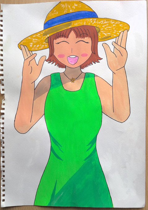 絵具で絵を描きました!🎨 夏っぽい感じをイメージして…🌻 #イラスト #イラスト練習中 #アナログイラスト #絵具 #夏