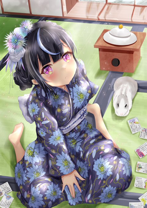 新春夢衣花ちゃん(オリキャラ) うさぎはうちで飼ってるうさぎです。 #絵描きさんと繋がりたい