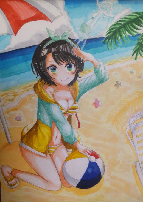 海の日&ホロライブサマー復活おめでとうの思いを込めて水着スバルちゃん🏖🌊☀ 初めて背景描いたけどすごい難しかったです…!💦 #プロテインザスバル #海の日 #ホロライブサマー #帰ってきたホロサマ