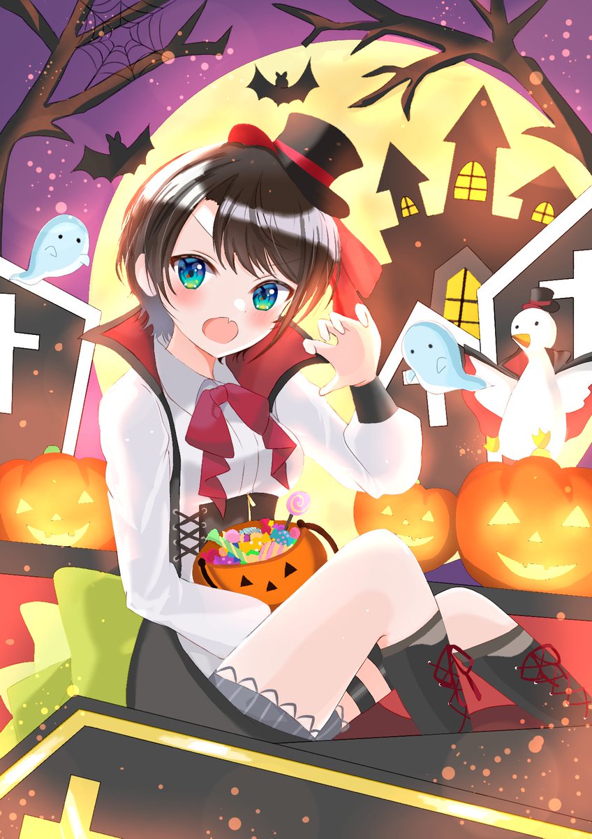 ハロウィンスバルとノエスバ! 背景ちゃんと描いたり初めてのデフォルメ描けて良かった!でも顔が納得いかなかったからバランスとか意識したい! 描きたいのたまってるから早く描いて投稿したい〜!スバルちゃんの新衣装も早く描きたすぎて、、、😇 12月も頑張ろう! #今月描いた絵を晒そう