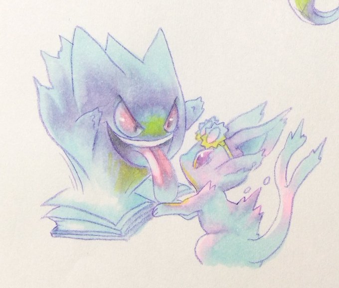 ③2枚目をぜひ見て欲しい! 後の茂み、せっかく描いたのに表示オフのまま動画にしちゃった、かわいそうな茂み😂 方向性やブラシが決まったから この辺は、めちゃめちゃ早かった! #5Gポケハロウィン #ポケモンイラスト広場