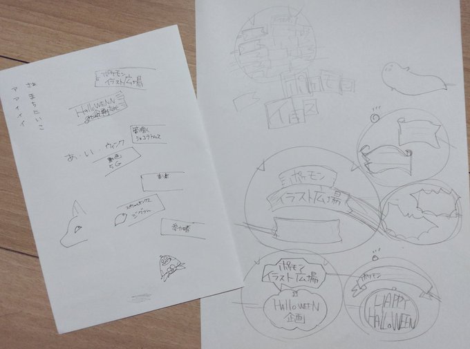 🎃ハロウィン動画🎃 せっかくなので、背景とかみてみてー!しよっかと✨ ①最初は、紙にラクガキみたいに たくさんプロット描きますね✨ 1番楽しい!!風呂敷広げまくる🥳 #5Gポケハロウィン #ポケモンイラスト広場