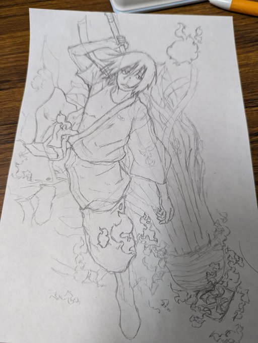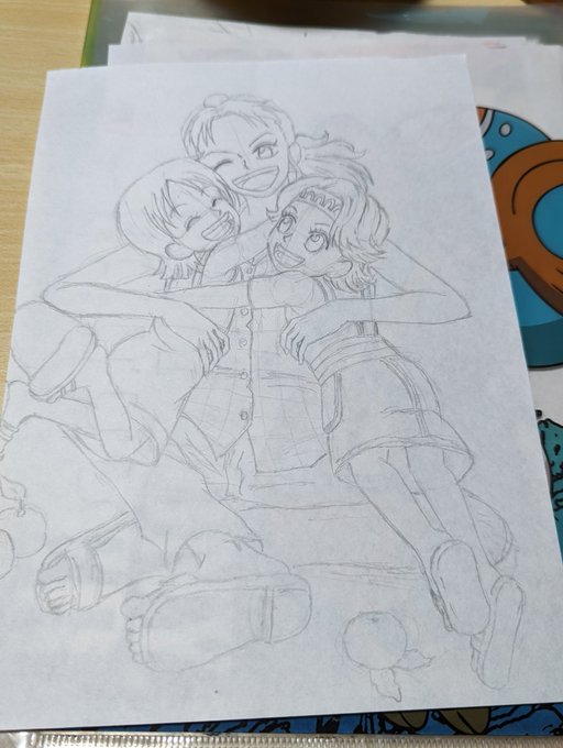 下絵はこんなものかなー🤔 ONEPIECE模写の模写(いろんなシーンの複合です) #イラスト #イラスト好きさんと繋がりたい #アナログイラスト #絵描きさんと繋がりたい #ONEPIECE #ヤマエー