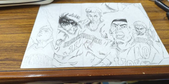 今日はここまで😅 いつもは ラフ→下絵→ペン入れ なんですが、今回 ラフ→ペン入れ と、ちょっと乱暴なやり方で😅 #イラスト #イラスト好きな人と繋がりたい #アナログイラスト #絵描きさんと繫がりたい #絵描きフォロバ100 #スラムダンク