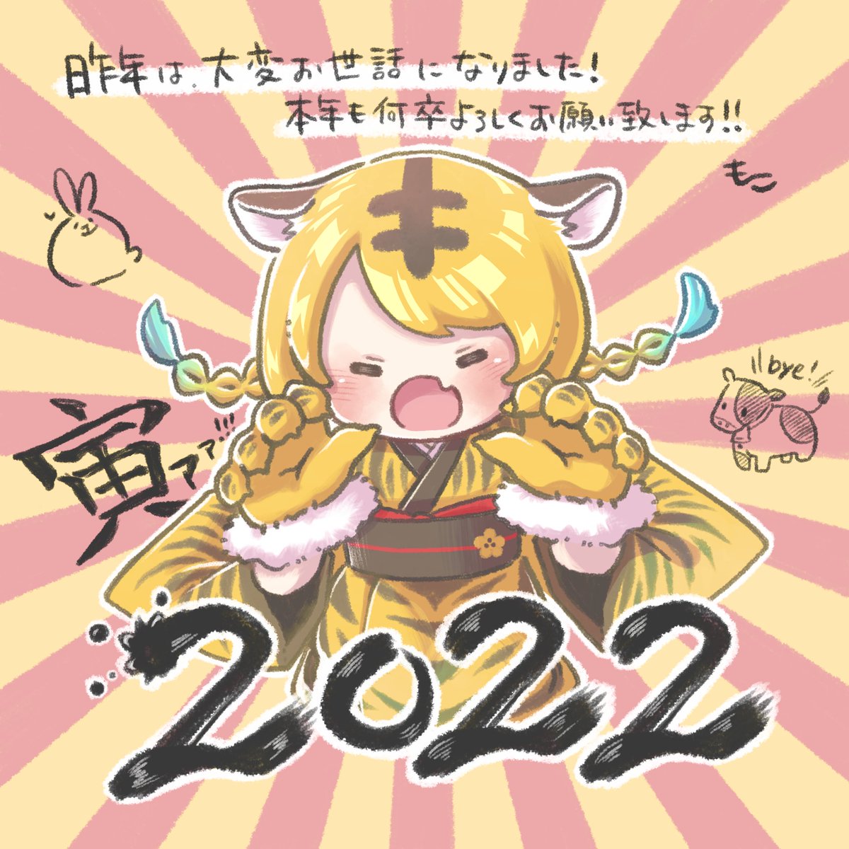 12 63 昨年は大変お世話になりました!🙇♂️ 本年も何卒よろしくお願い致します!🎍 #2022新年 #虎 #寅 #イラスト #illustration #寅年 #お正月 22/01/01 00:00