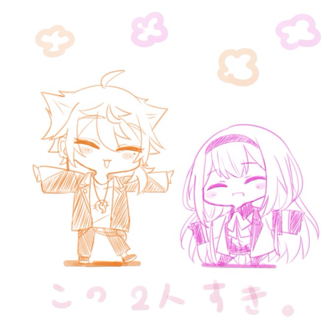 ちびキャラ練習 ユニット名決定おめでとうございます🎉よい名だ…… #まめねことレオス #絵バンス #レインの依頼書 #びーぴーえむ