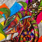 0 7 きみはなにいろ? #カメレオンとにゃんこ #ペン画 22/04/14 14:40