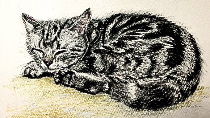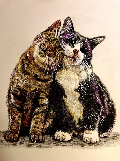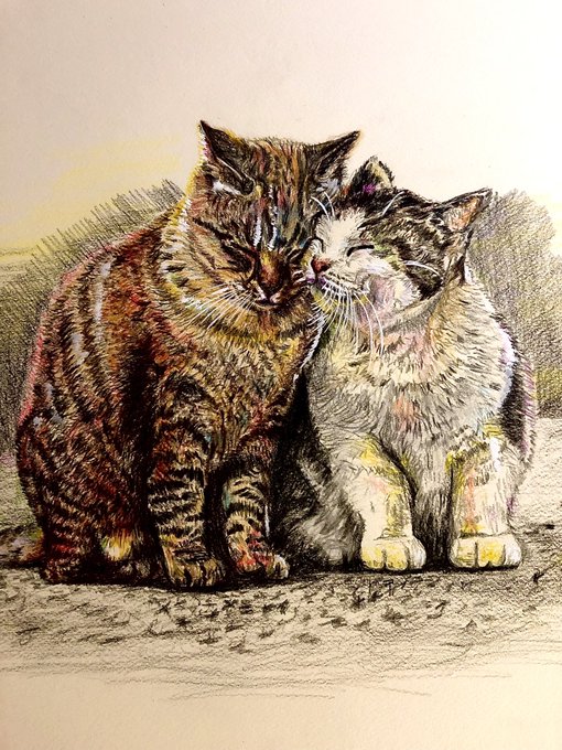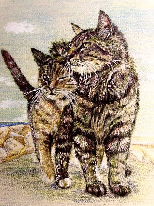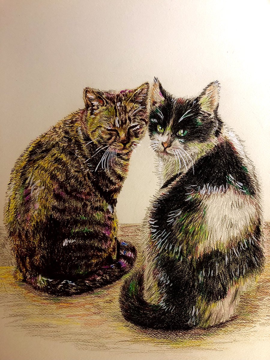 きみと一緒に #猫好きさんと繫がりたい #モフモフ習作 #色鉛筆画