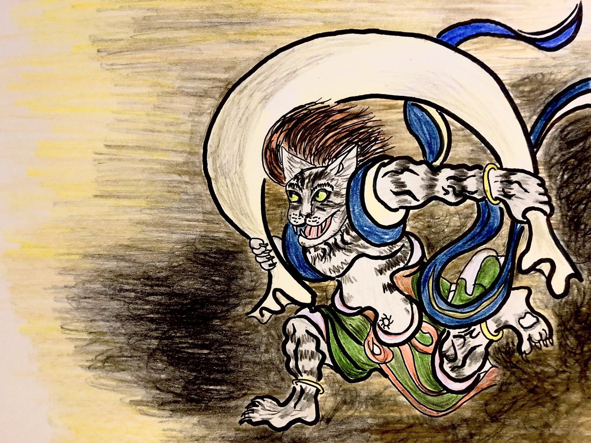 0 5 風伯にゃんこ🌬 #猫好きさんと繋がりたい #色鉛筆画 22/09/20 17:10