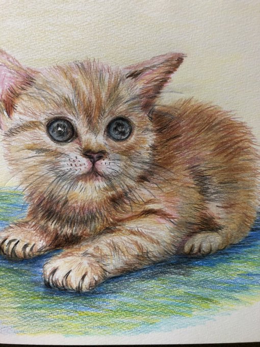 パヤ毛こにゃんこ②🐾🐾 #猫好きさんと繋がりたい #過去絵 #色鉛筆画