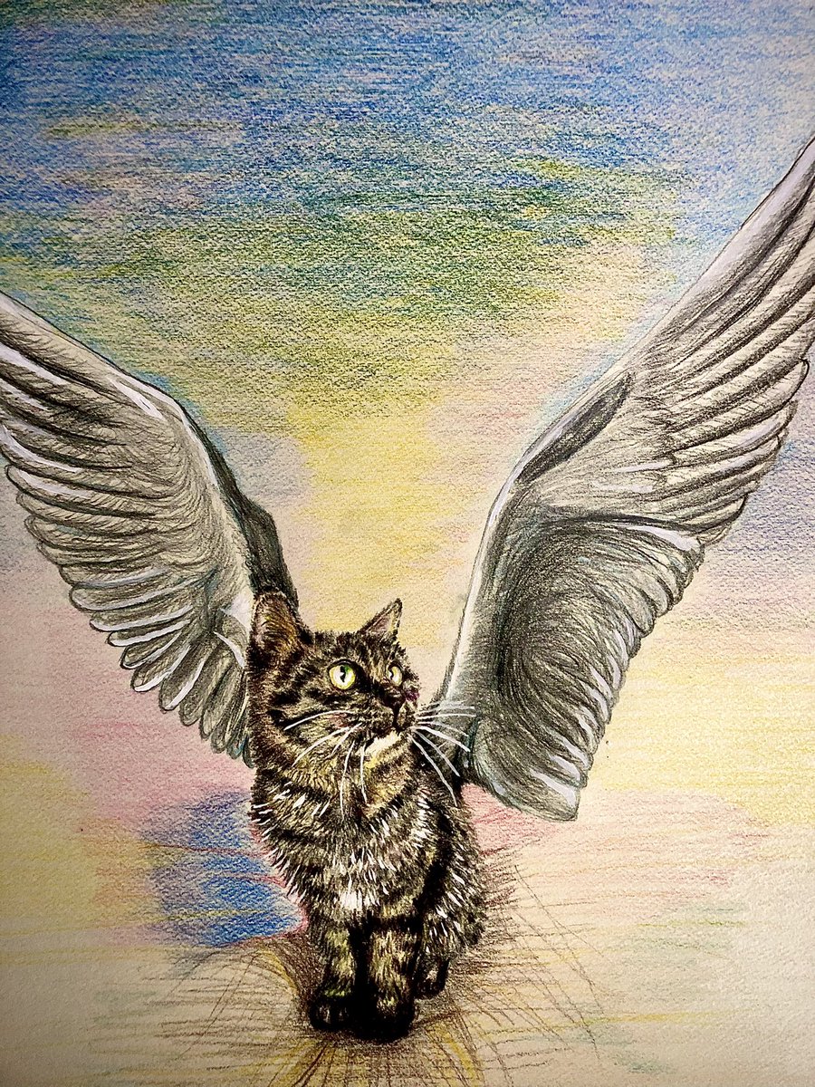 1 6 飛翼_きみの背中にあるもの #猫好きさんと繋がりたい #色鉛筆画 23/01/11 10:53