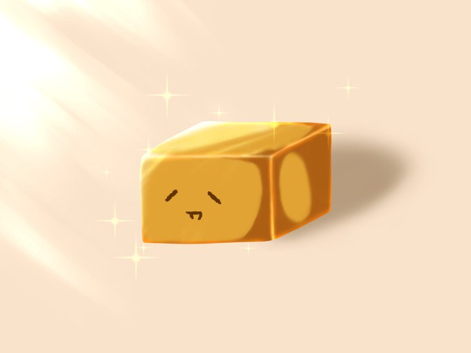 みなさんこんばんは2月になりましたね! どうやら当アカウントは2月1日にツイッターを始めたらしいので無事1周年を迎えました! これは記念におとうふきんぴかにしたろ!って思って金塊を見ながら描いてみたところキャラメルになってしまったものです! よろしくおねがいします!