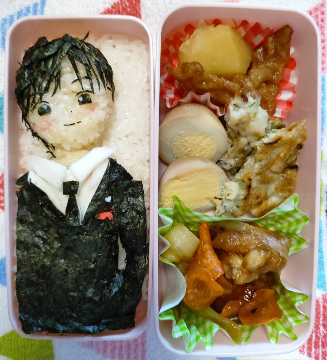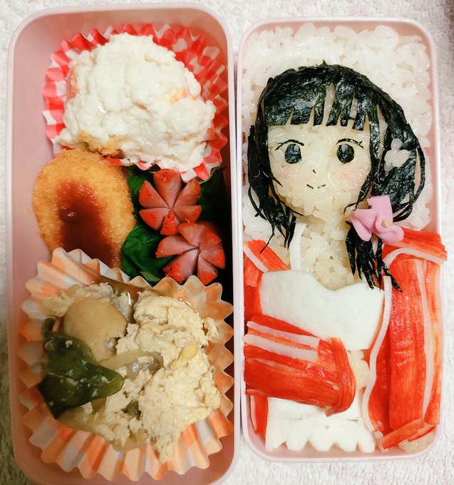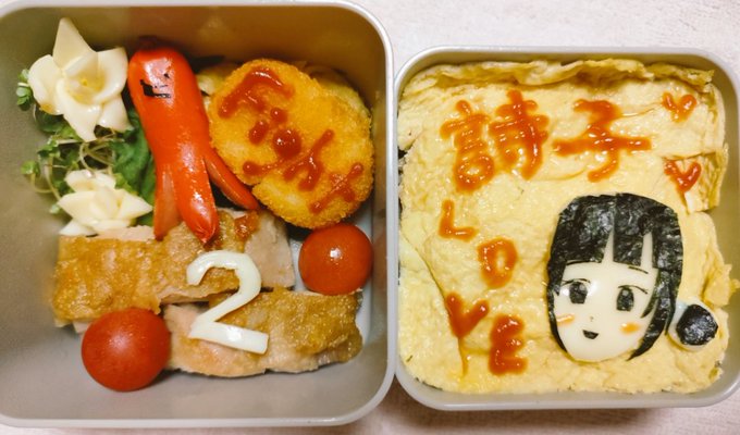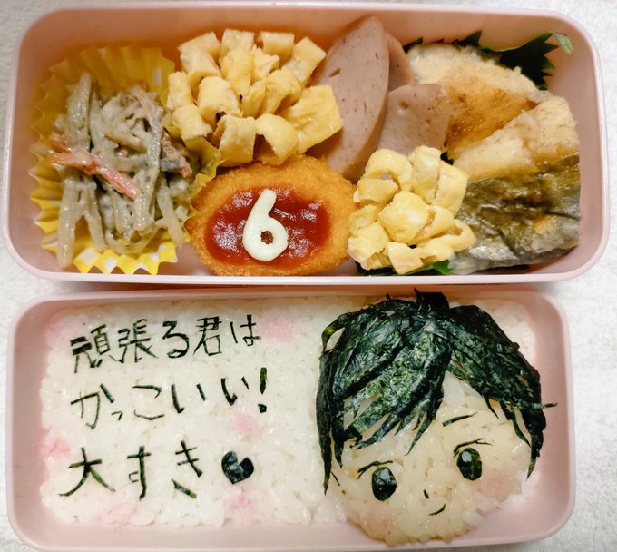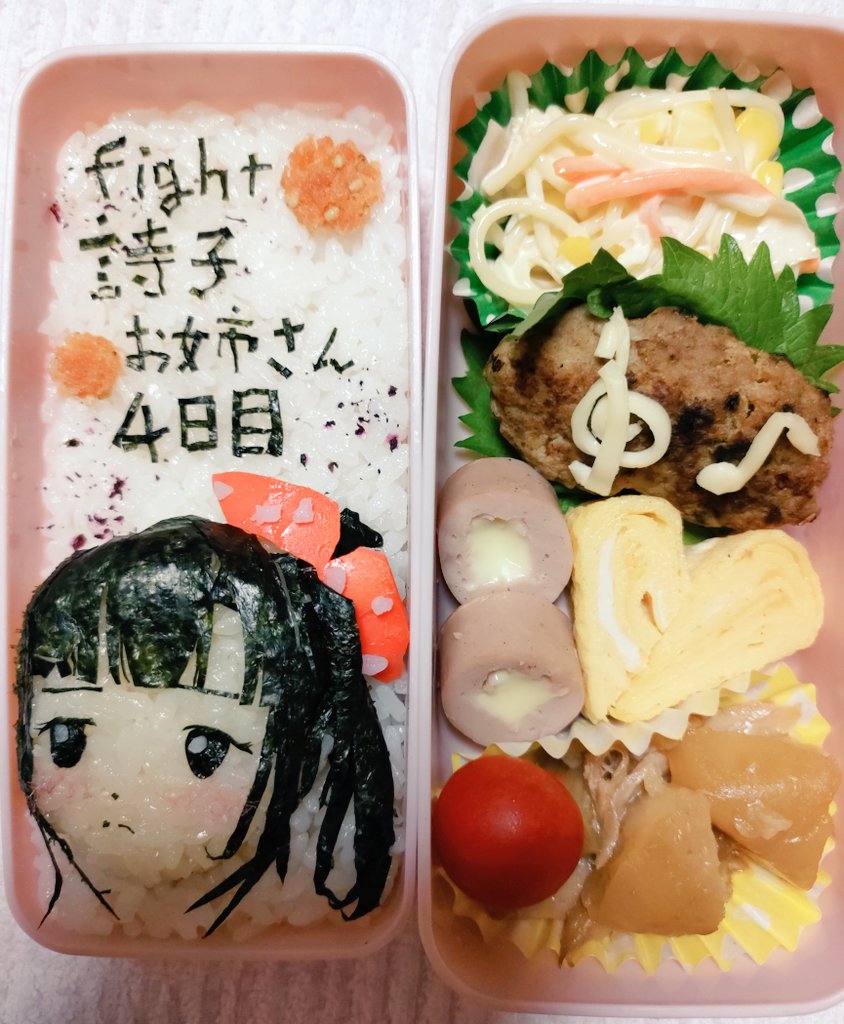 ポ禁応援キャラ弁6日目ー✨ 今日はウタ様イメージ! 微妙だけど…( ˘•ω•˘ ).。oஇ ちゃんとポ禁を続けて、毎日ツイートして、お姉さんの真面目さが伝わってくる( ꈍᴗꈍ)💕! #詩子あーと #詩子おねえさんといっしょ