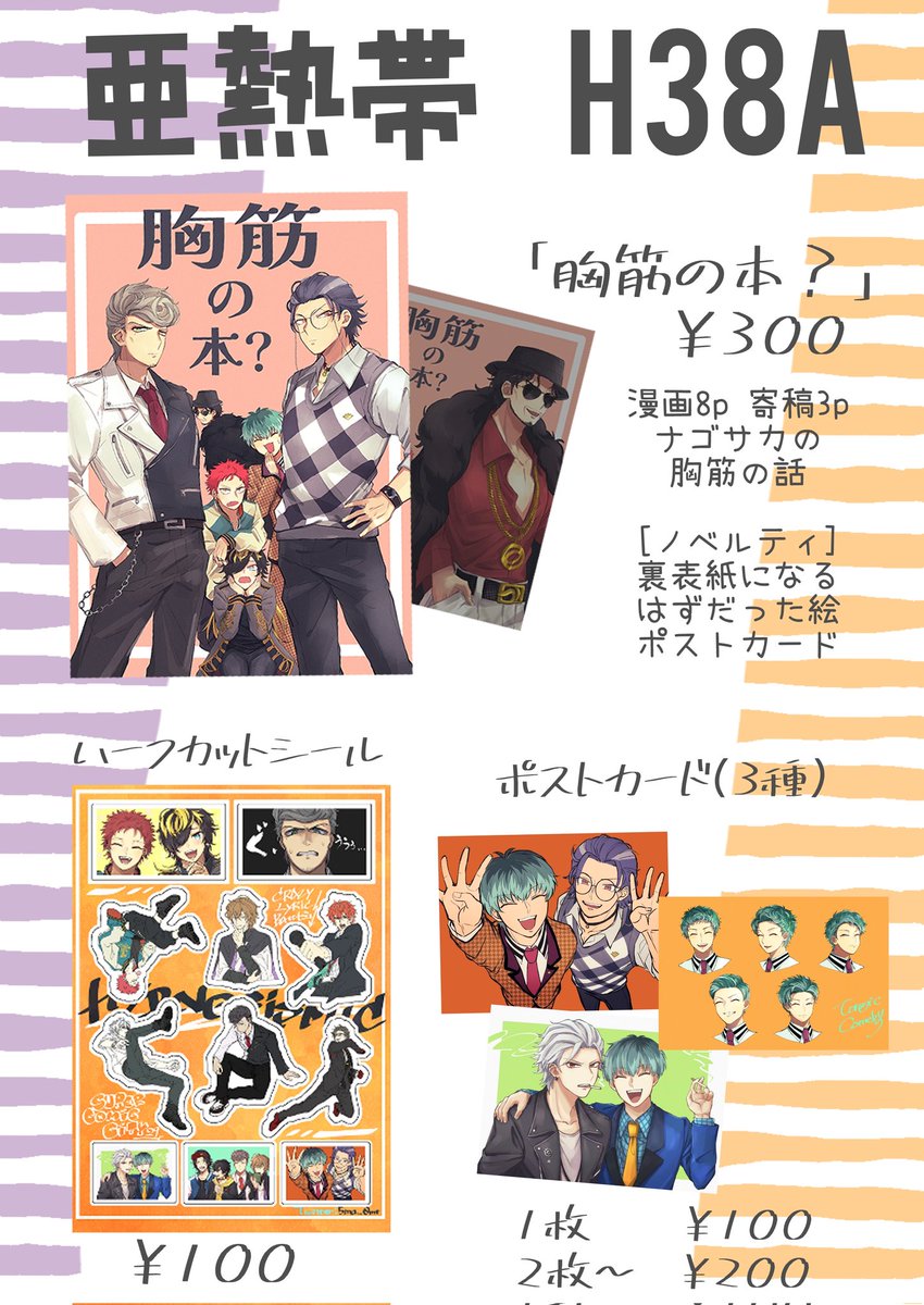 おしながき今更ですが… 本日、超CLB初参加します! 「亜熱帯」東1 H38a 本と過去絵シールとポストカードが出ます。中身ペラペラの本はノベルティポスカ付+3名の方に寄稿いただきました!!感謝 よろしくお願いします🙌