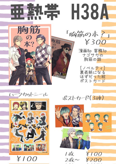 6 8 おしながき今更ですが… 本日、超CLB初参加します! 「亜熱帯」東1 H38a 本と過去絵シールとポストカードが出ます。中身ペラペラの本はノベルティポスカ付+3名の方に寄稿いただきました!!感謝 よろしくお願いします🙌 22/05/03 09:17