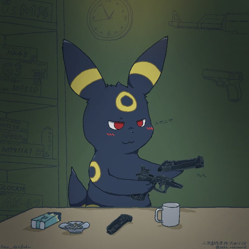 [ポケモン三次創作] だめブイズファンアート描きました 夜中にベレッタを通常分解してオタクスマイルをキメる大家さんです #だめブイズ